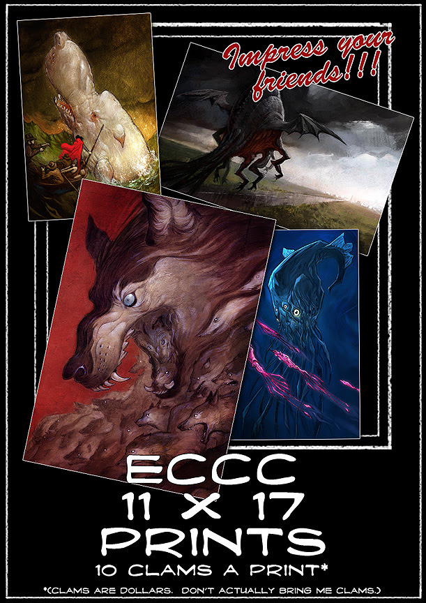 Hey kids, I'll be at ECCC this Friday selling ten dollar posters and some promotional magnets. This being my virgin year, there's not a lot, so get them before they're gone! I'll be at table H-13 with my good buddy Trevor Howell, who graciously donated table space to me.